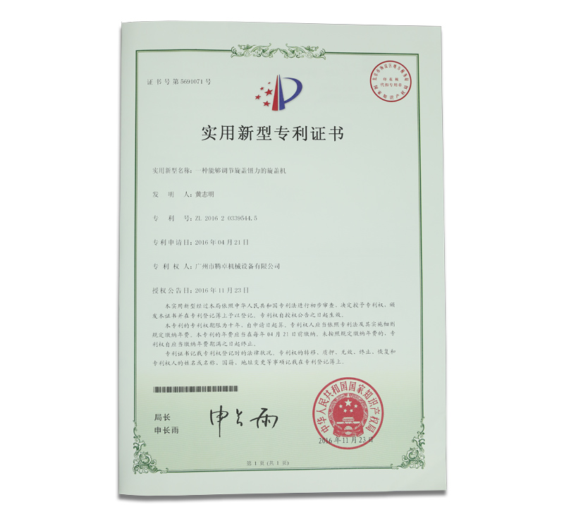 騰卓機(jī)械專(zhuān)利生產(chǎn)證書(shū),專(zhuān)業(yè)制造包裝設(shè)備的生產(chǎn)廠(chǎng)家,全自動(dòng)及半自動(dòng)的洗瓶機(jī),烘干機(jī),灌裝機(jī),旋蓋機(jī),貼標(biāo)機(jī),套標(biāo)機(jī),打碼機(jī)等非標(biāo)定制自動(dòng)化包裝生產(chǎn)線(xiàn)