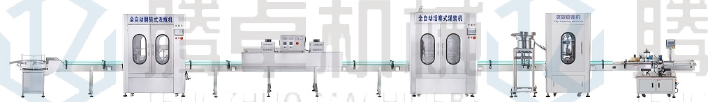 1.全自動(dòng)生產(chǎn)線流程:人工把瓶放到送瓶轉(zhuǎn)盤上-自動(dòng)洗瓶-自動(dòng)高溫烘干殺菌-自動(dòng)灌裝-人工燈檢-自動(dòng)理蓋下蓋-自動(dòng)旋蓋-自動(dòng)打碼-自動(dòng)貼標(biāo)-人工收瓶