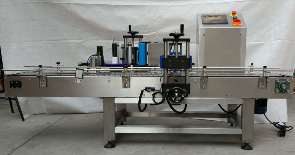 貼標(biāo)機(jī)是采用不干膠卷筒貼標(biāo)紙,適合各種大桶類貼標(biāo)的產(chǎn)品。操作簡單。貼標(biāo)采用刷標(biāo)貼標(biāo)方式,一次完成放瓶、貼標(biāo),還可選配色帶打碼機(jī)同步完成標(biāo)簽生產(chǎn)日期打印,本機(jī)采用PLC控制,同步追蹤,出標(biāo)由步進(jìn)電機(jī)控制,確保出標(biāo)速度與卷瓶速度同步的自動化包裝機(jī)械。是現(xiàn)代的機(jī)電一體化產(chǎn)品,具有優(yōu)良和可靠的工作性能。不干膠貼標(biāo)機(jī)具有清潔衛(wèi)生、不發(fā)霉,貼標(biāo)后美觀、牢固、不會自行脫落,生產(chǎn)效率高等優(yōu)點(diǎn)。